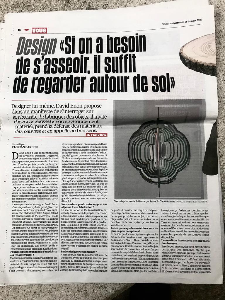 Le super designer David Enon sort le livre « la vie matérielle mode d’emploi ». Durant la promotion de son ouvrage, il présente le design contemporain et parle du projet d’enseignes développé en 2019.