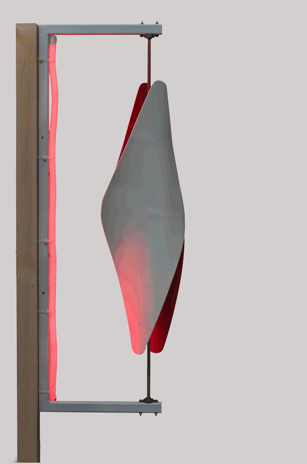 La Carotte de tabac est un symbole urbain datant du XVIIIe siècle pour signaler les commerces de tabac. Sa forme extrêmement reconnaissable a ici simplement été mise en volume afin de former les deux pales d’une éolienne à axe vertical. Aussi, les buralistes ont pour obligations d’éclairer leurs signes en rouge, c’est pourquoi l’éolienne produit sa propre énergie pour alimenter le tube LED qui l’éclaire.